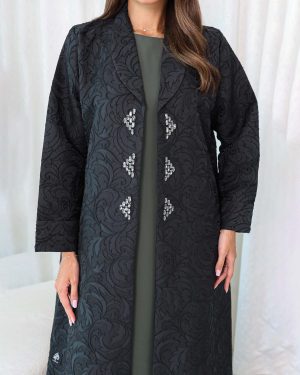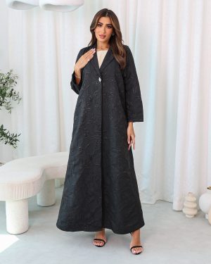 Arooba Jacquard Abaya is a stylish, collar-style abaya. This beautiful piece is made from high-quality fabric and designed to ensure comfort, fashion, and quality.