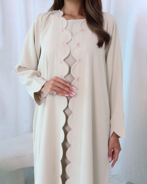 The Jalila Abaya is a classy and luxurious abaya with beautiful cut-work, beads on the front, and elegant sleeves.