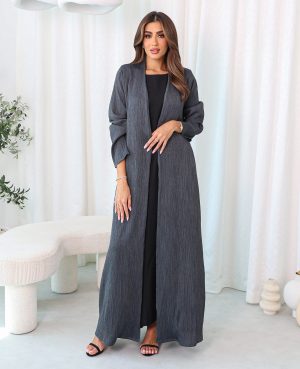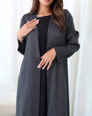 Elevate your modest style with this elegant Grey Pleated Crepe Abaya, designed for a graceful and timeless look.