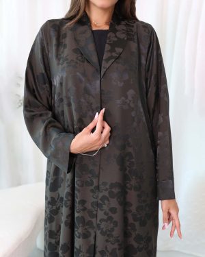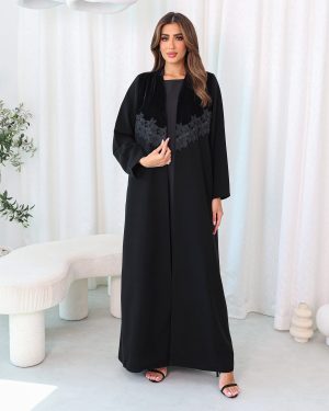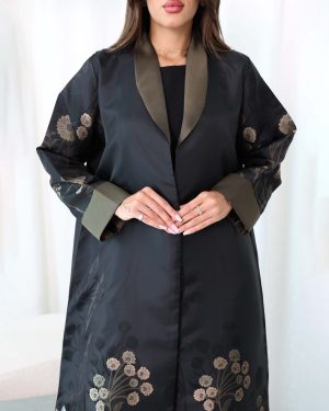Black Royal Abaya is beautifully crafted from a combination of flowery brocade and smooth plain satin fabric.