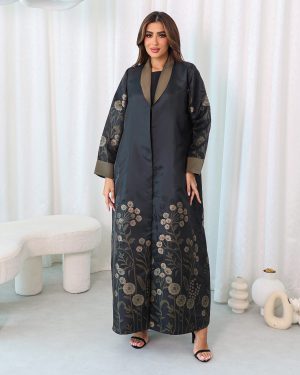 A Jacquard shimmer abaya is an elegant and sophisticated garment crafted from Jacquard fabric, featuring a subtle, reflective shimmer.