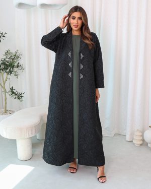 The classy green color Jacquard silk abaya is often favored for its elegant, sophisticated look while remaining comfortable and breathable for everyday wear.