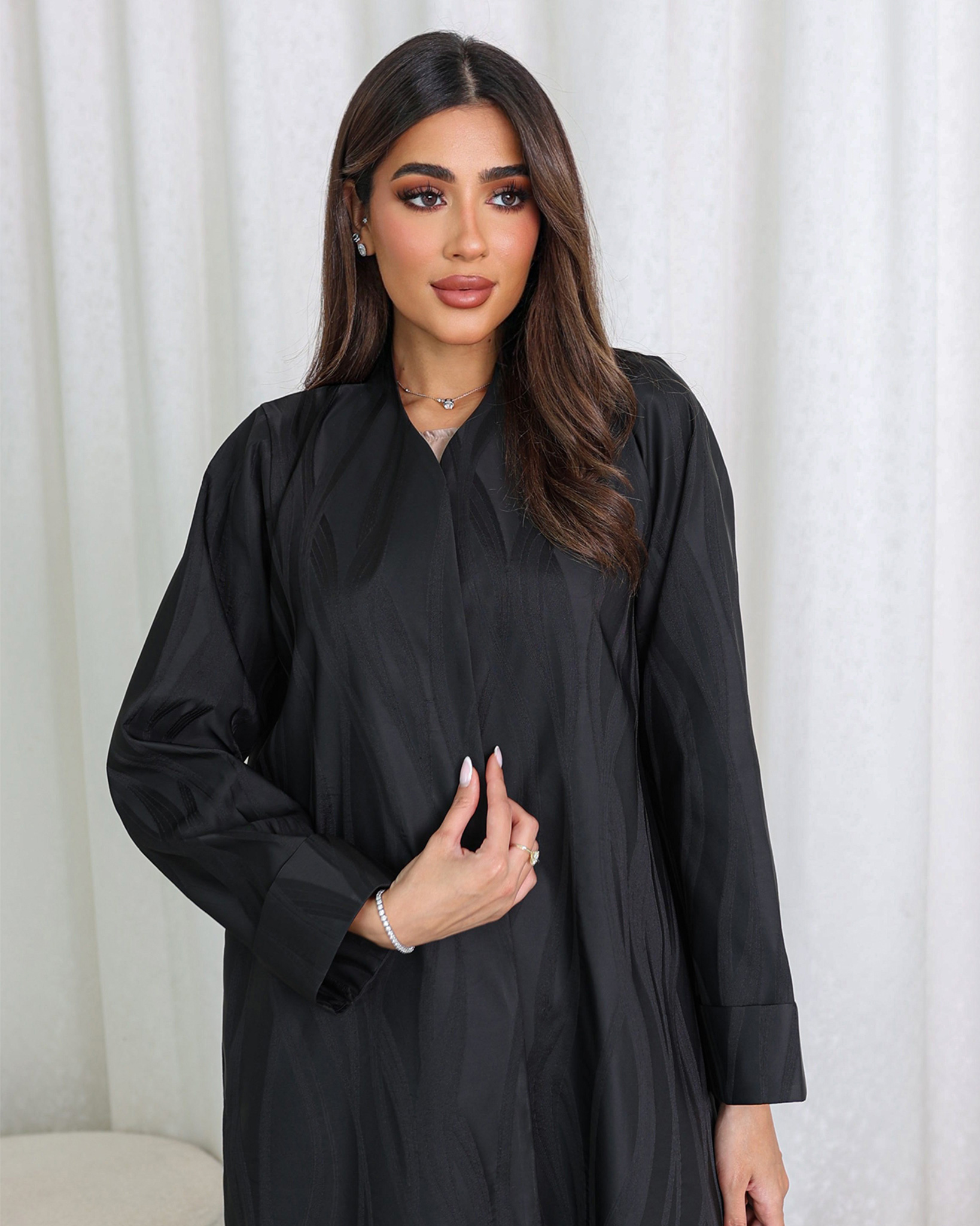 Alaa Abaya is a classy, modern abaya. Jacquard fabric is typically made of synthetic materials, which add different qualities to the abaya. The fabric may have a slight sheen, especially when woven with silk or metallic threads, giving it an elegant, luxurious finish. Made from high-quality materials, this abaya is durable and comfortable. Order now and enhance your closet with this elegant abaya. Made from high-quality materials, this abaya is comfortable to wear. Suitable for all seasons.