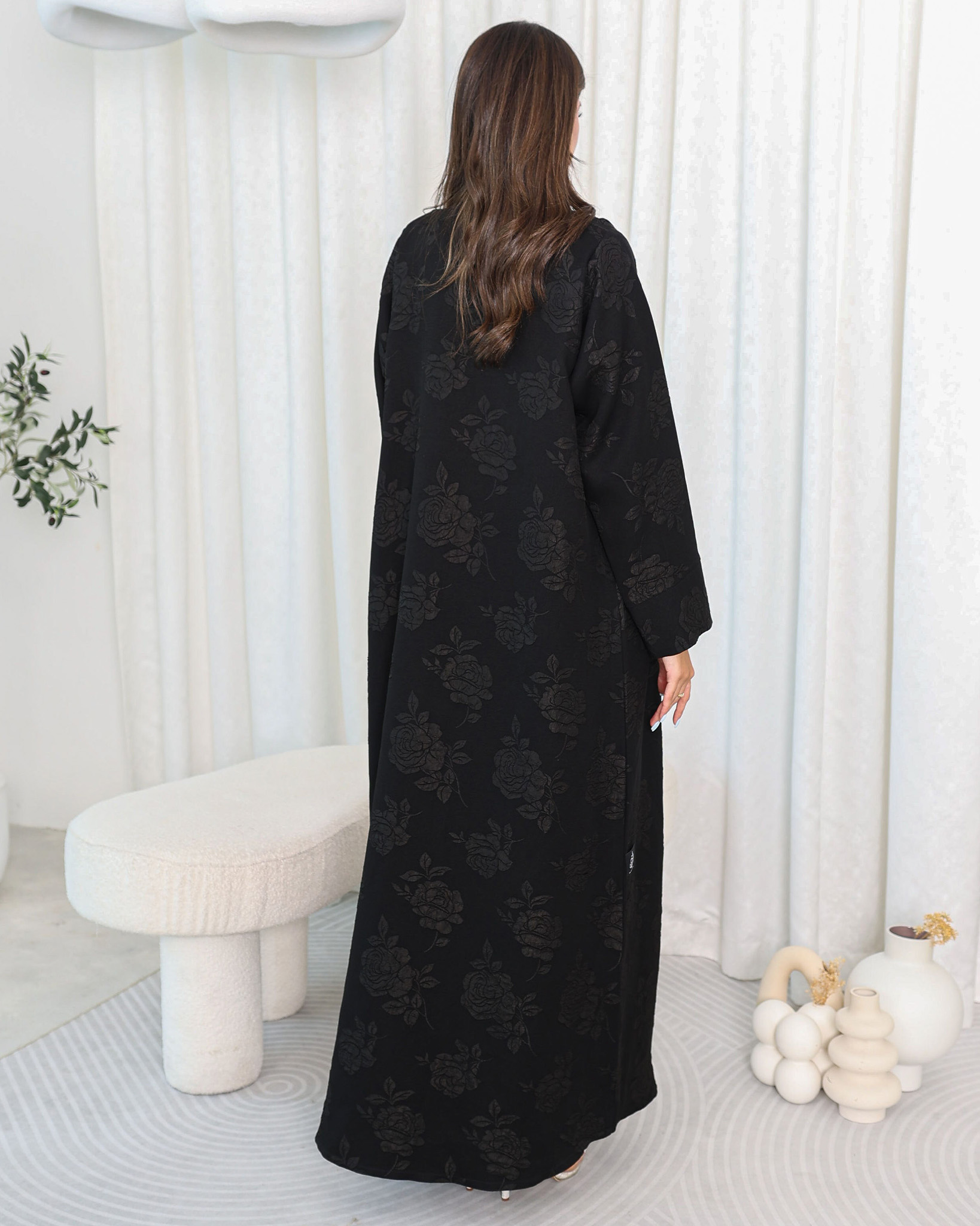 Atika Abaya is made with jacquard fabric, giving it a soft, smooth surface with a shiny finish, which enhances its luxurious feel and appearance. This elegant abaya is suitable for both everyday use and special occasions, such as gatherings and other events. It offers a blend of modesty, style, and cultural significance. Order now and enhance your closet with this elegant abaya.