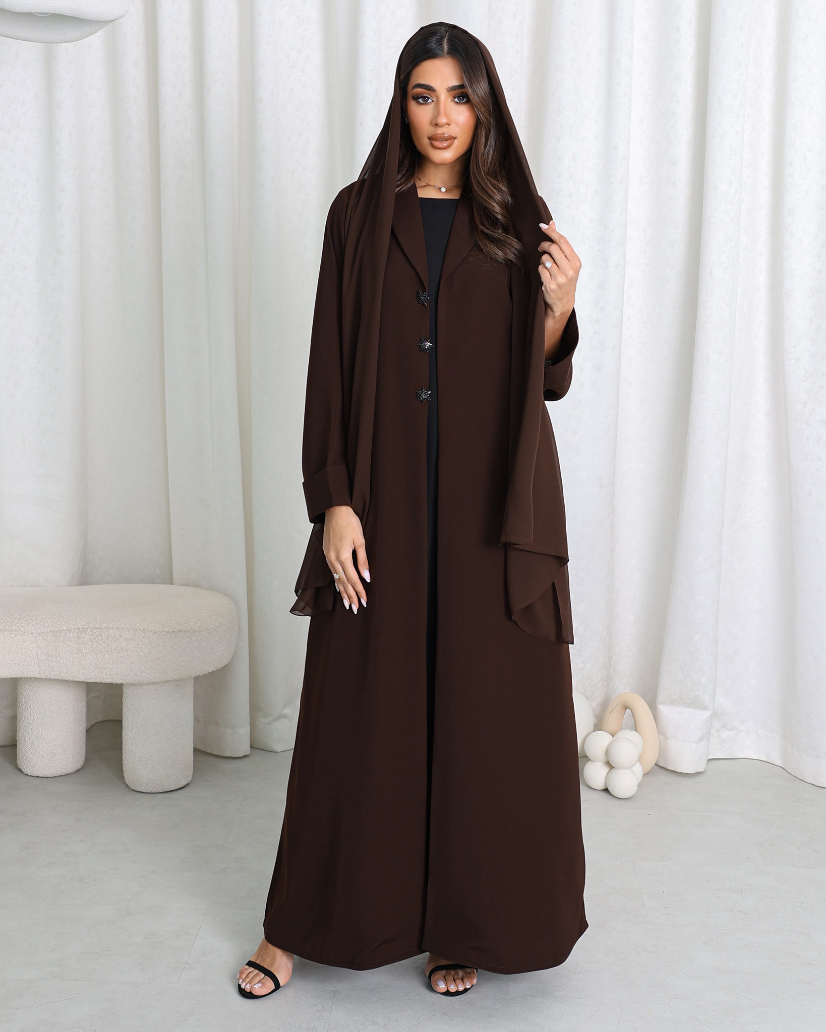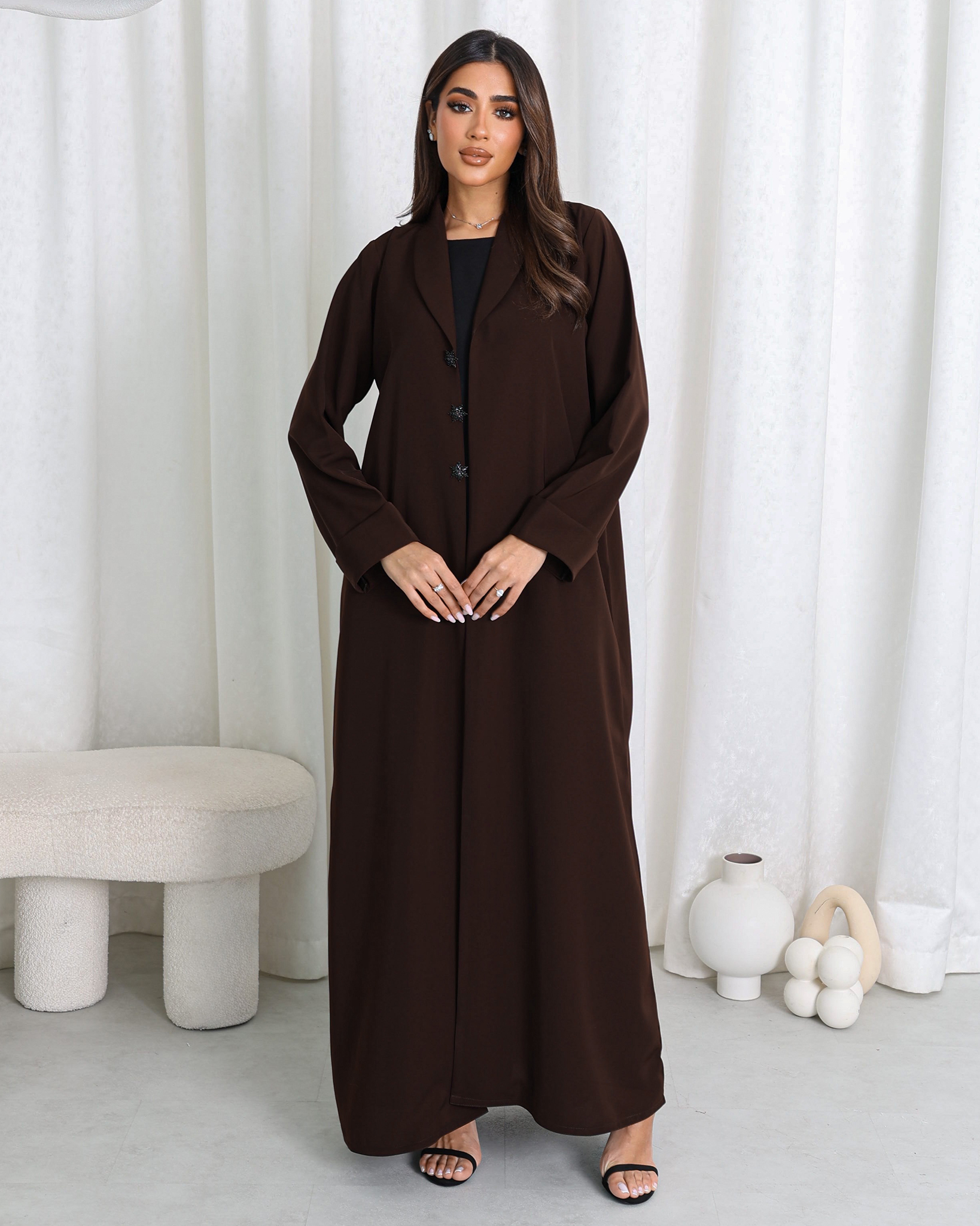 Zeba Abaya is a graceful, modern-style green abaya with elegant buttons on the front. Barbie crepe fabric is a soft, high-quality synthetic material known for its silky feel and comfortable drape, making it ideal for both everyday wear and special occasions. Style yourself with this graceful abaya.